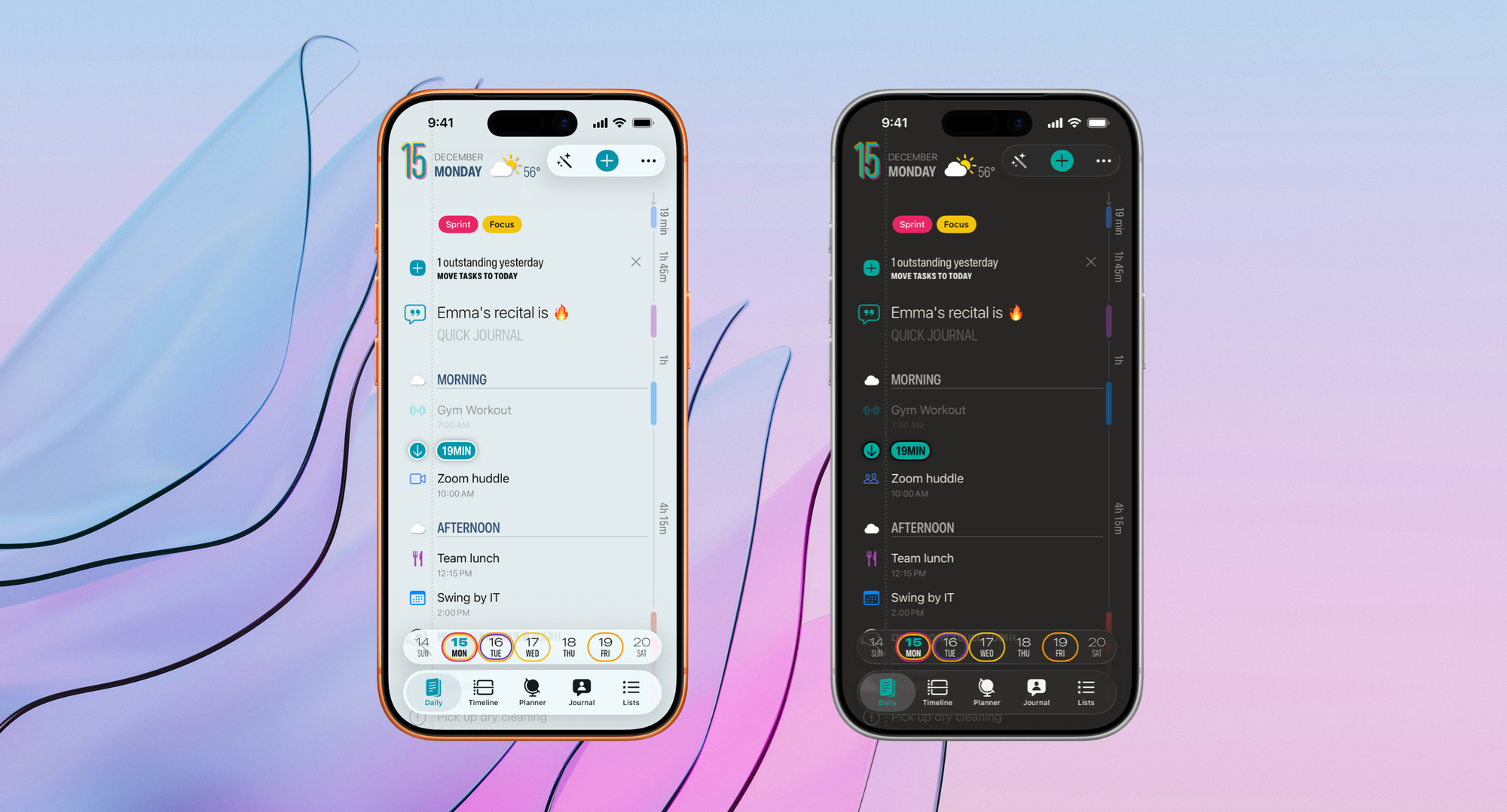 Think of it as three views into your time: Daily shows everything happening today, calendar, reminders, weather, habits, goals, all in one glance. It helps you triage tasks you missed yesterday, or punt stuff to tomorrow with a single tap.