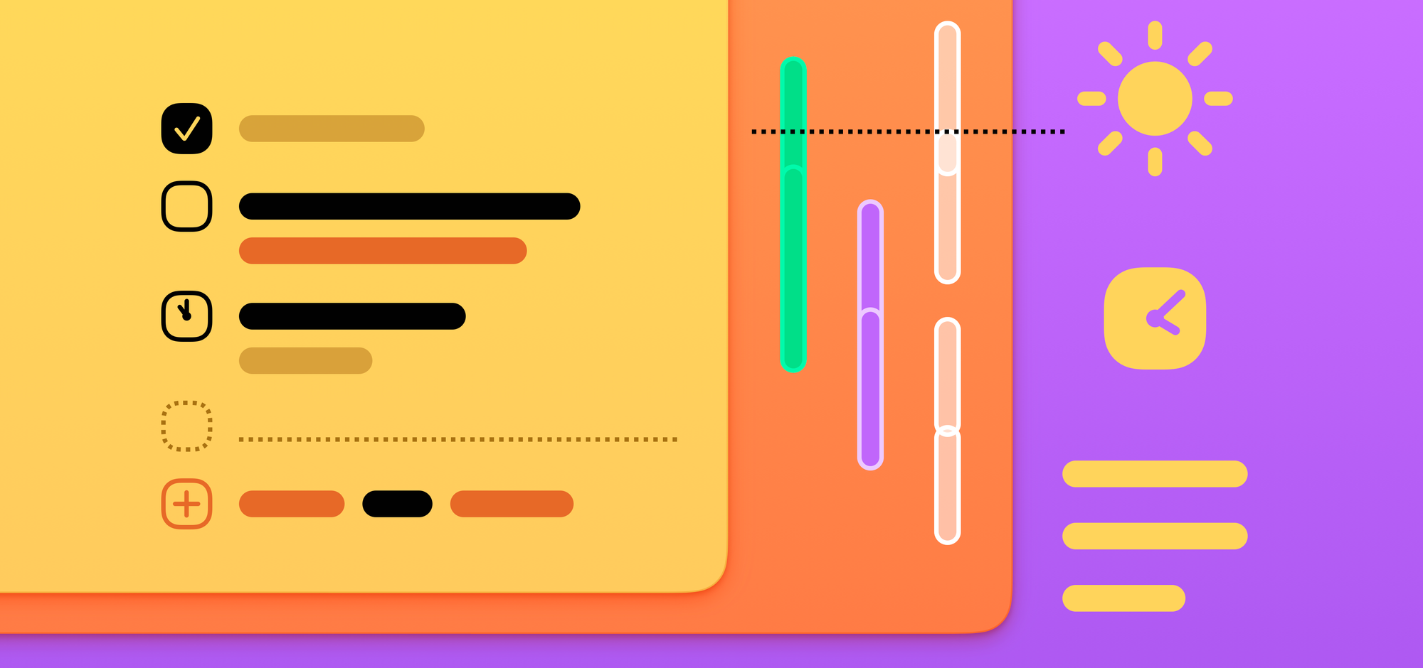 Days are the container. Everything lives inside the day: tasks, calendar events, habits, journal entries, weather. No project hierarchies, no inboxes, no overdue guilt. Just today.