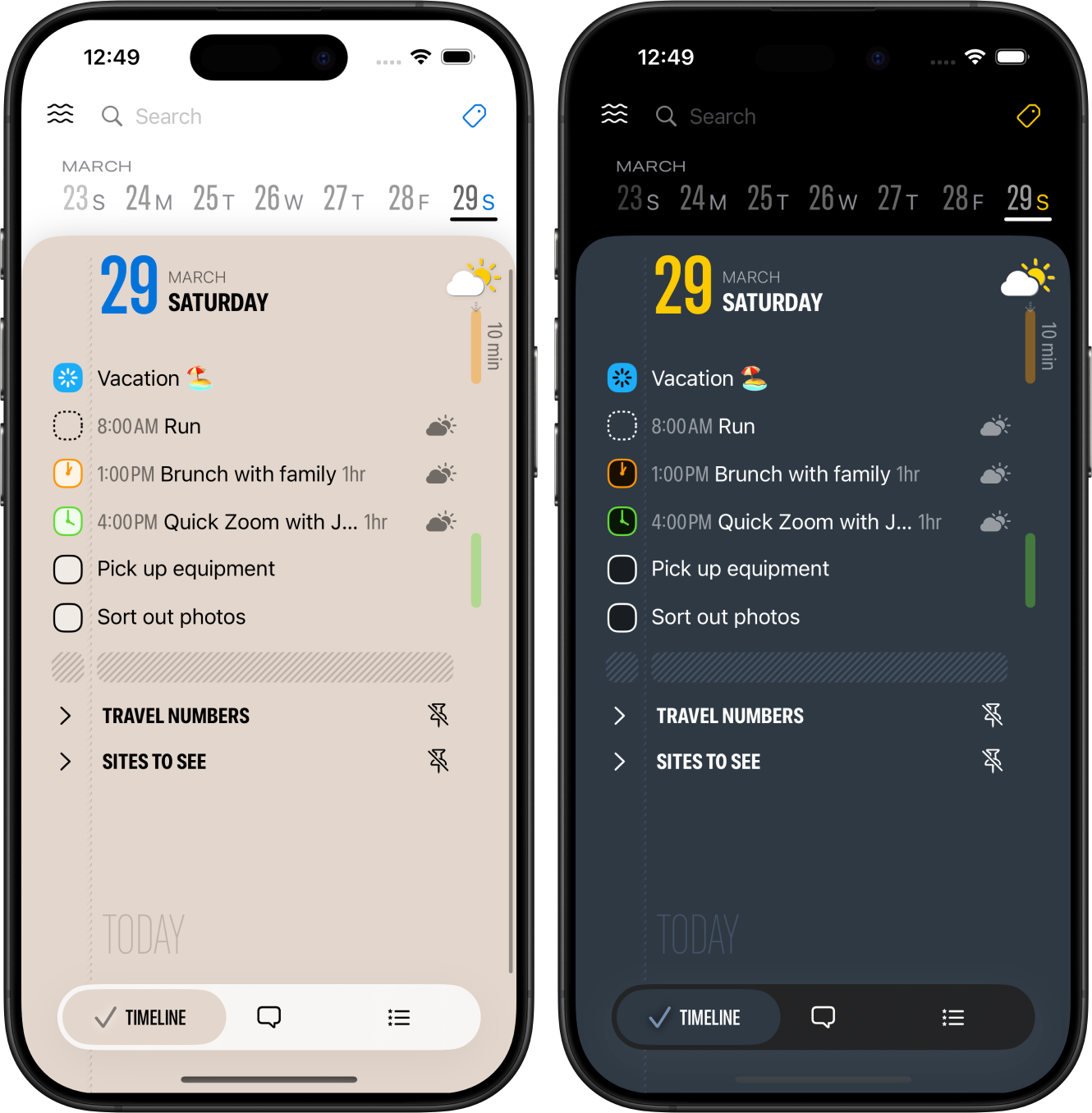 β’ See tasks, reminders, calendar events, and habits all in one timeline